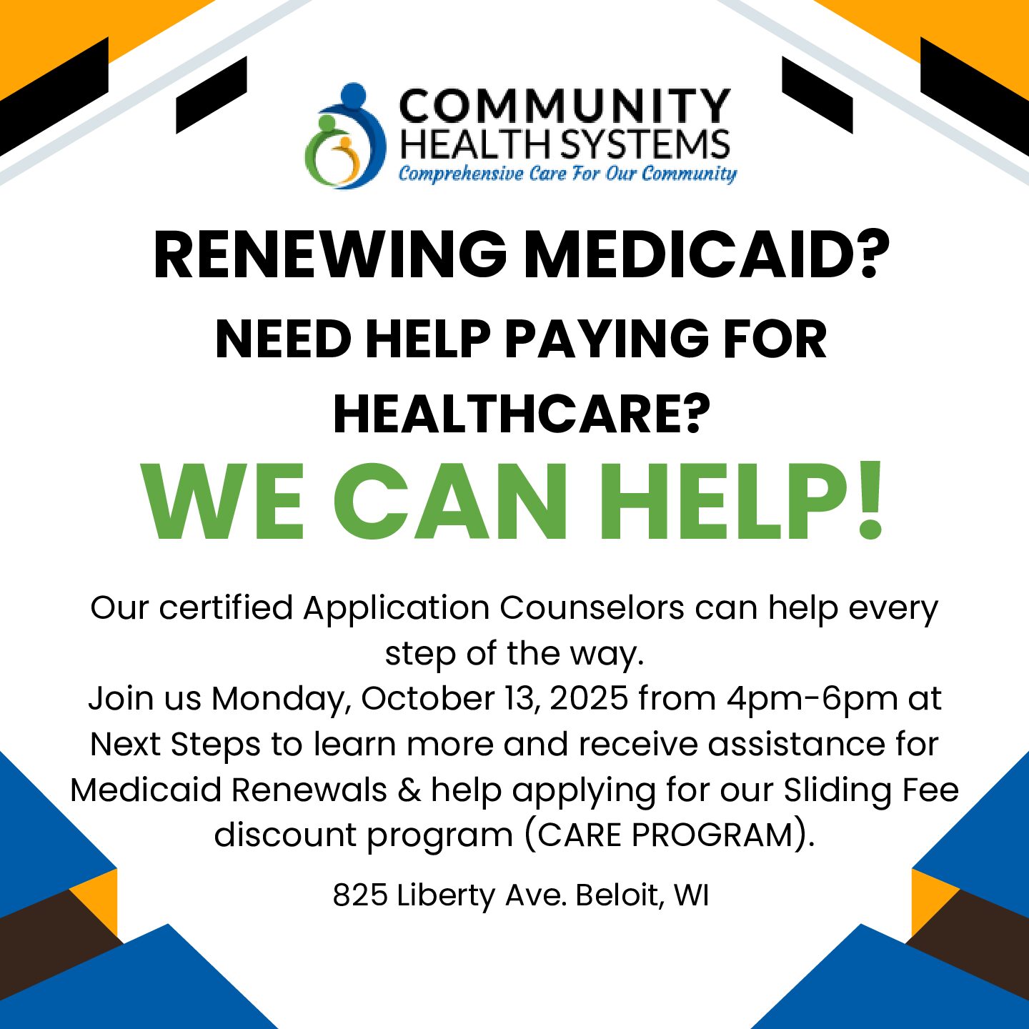 October 13, 2025 @ 5:00 pm - 6:00 pm - Join us for a free community event with Community Health Systems and their certified application counselors....
